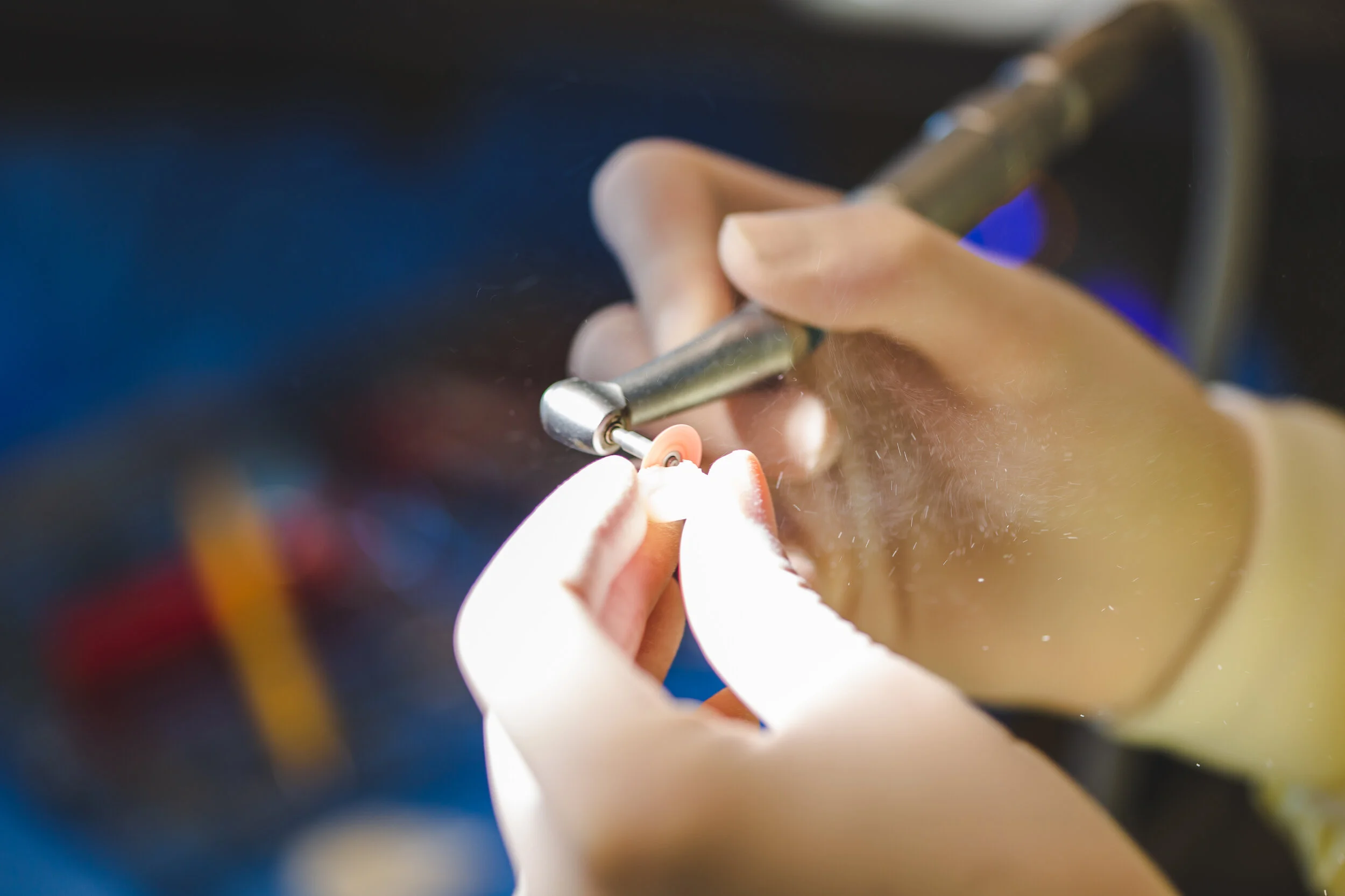Instead of grinding the filling down, it is carefully cut into larger pieces and removed in sections. This minimizes the generation of airborne particles.